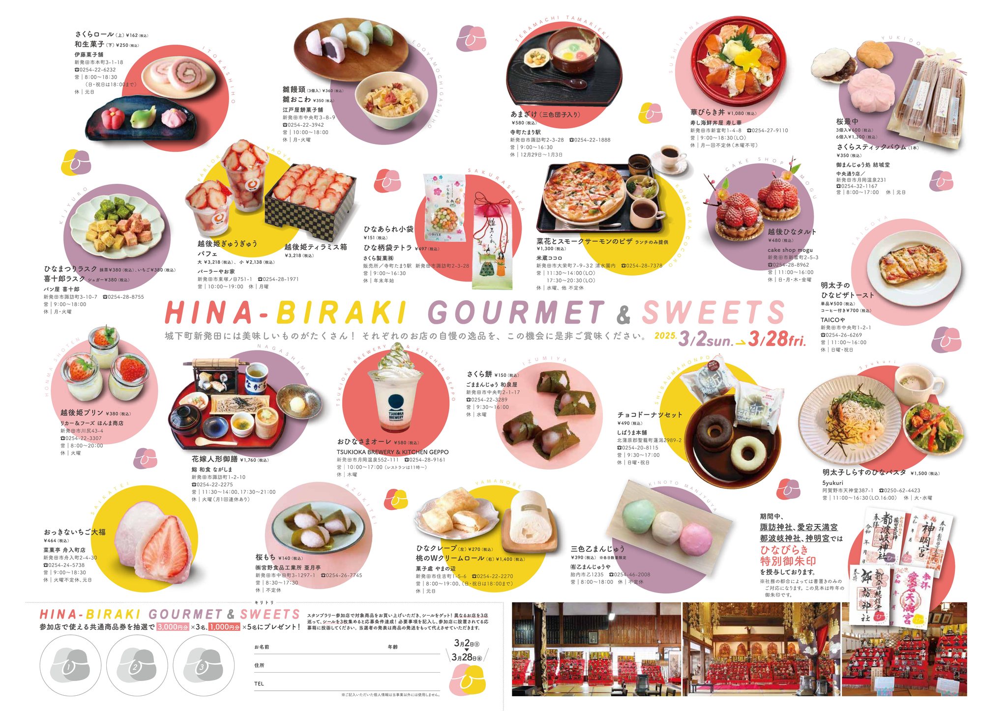 合わせて、花嫁衣裳の展示、神社での特別御朱印の授与、参加21店舗でのグルメ&スイーツの販売とスタンプラリー(今年は阿賀野市、胎内市、聖籠町のお店も参加!)も行います。