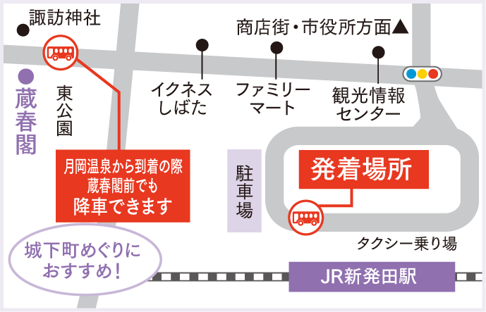 到着場所:JR新発田駅ロータリー内、蔵春閣前