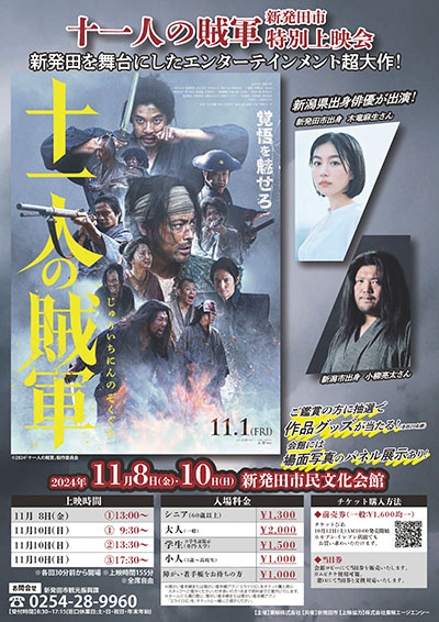 11月10日(日)実施『十一人の賊軍』新発田市 特別上映会に、 「辻斬」役として本作に出演している小柳亮太さん(新潟市北区出身、元幕内豊山)が来場されることが決定いたしました!上映前後に舞台挨拶も実施いたしますので、 この機会に是非足をお運びください。